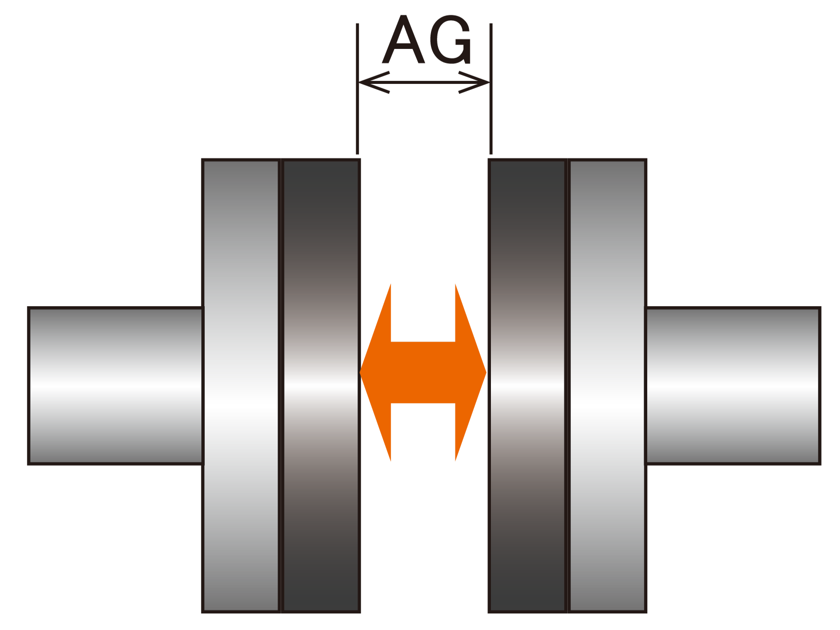 エアギャップ (AG)向かい合った(あるいは引き寄せあった)磁石間の距離。